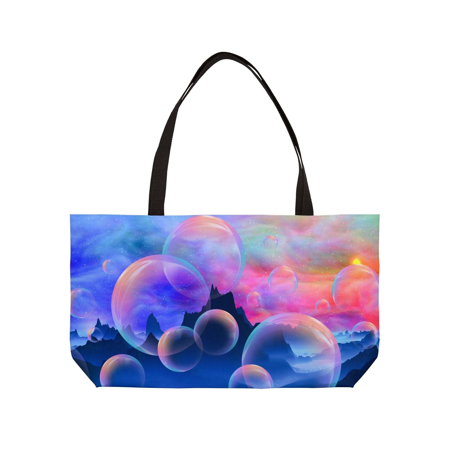 Unleash your inner adventurer with this otherworldly tote! Its spacious weekender style is ideal for all your fantasy-inspired quests. Whether headed to comic con or just on an intergalactic daydream, this nerdy bag's vibrant design is ready to turn heads. Durable and roomy, it's the perfect travel companion for your wildest imaginings.