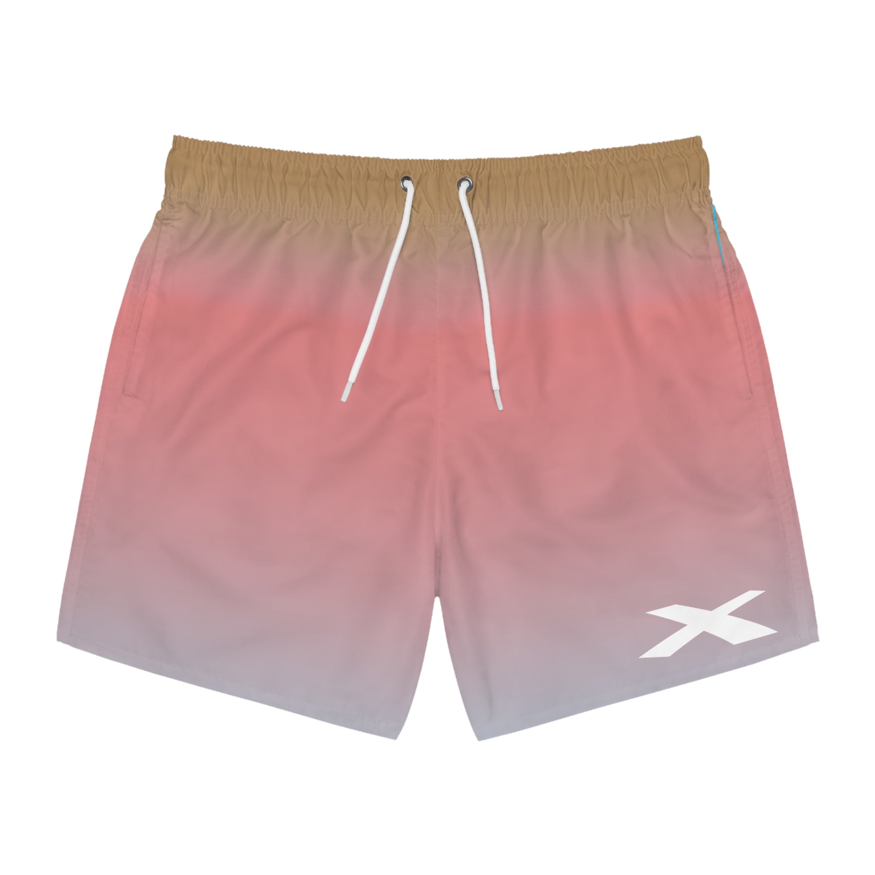 Gradient shorts with a logo on a white background