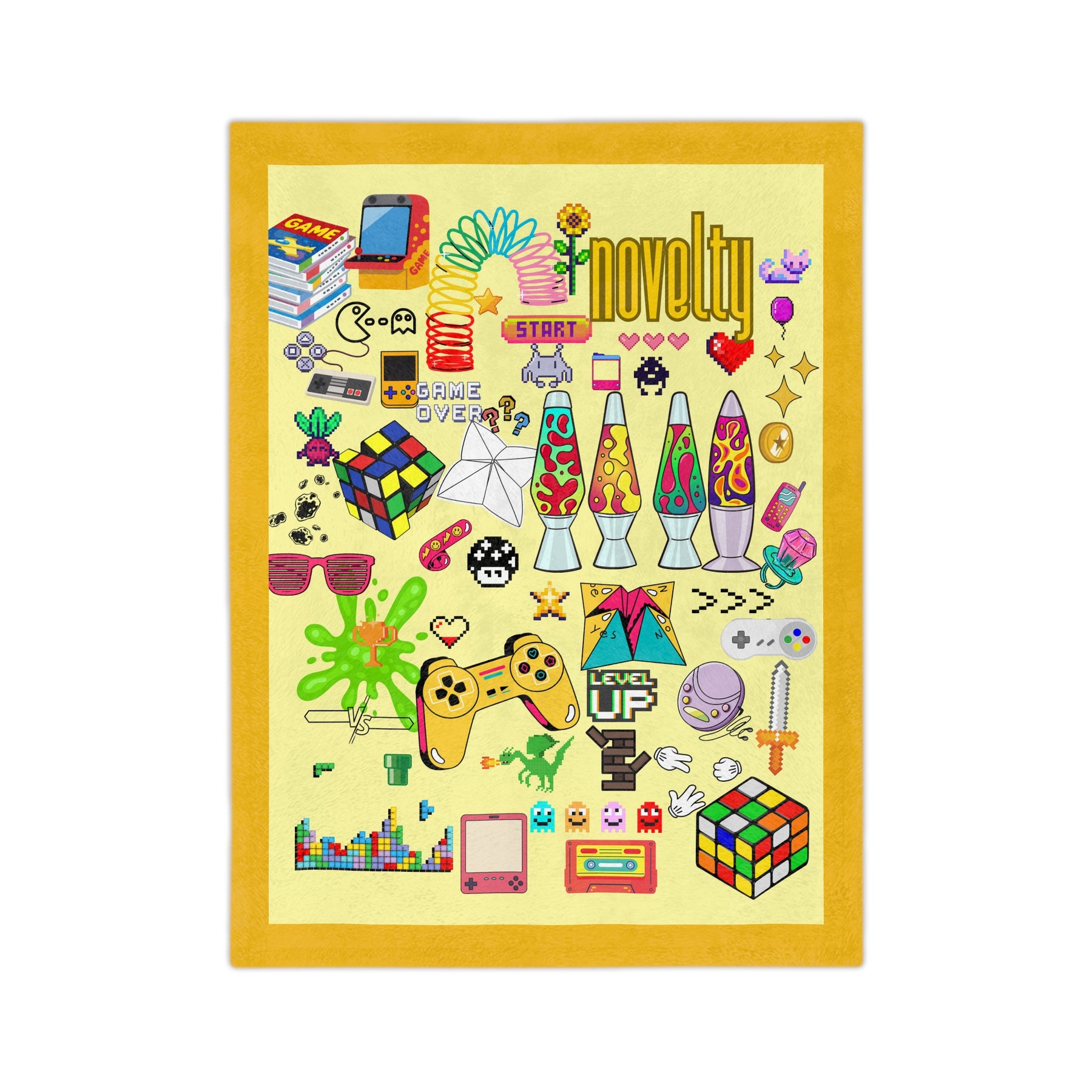 Snuggle up in our colorful gaming Microfiber Blanket.  This vibrant and playful retro velveteen blanket brings a pop of color to any space. This comfy blanket is perfect for game nights, cozy movie marathons, or just lounging around. Its fun design features gaming elements and retro motifs, inviting you to unwind and embrace your inner child. Ideal for teens, gamers, or anyone with a love for quirky decor.