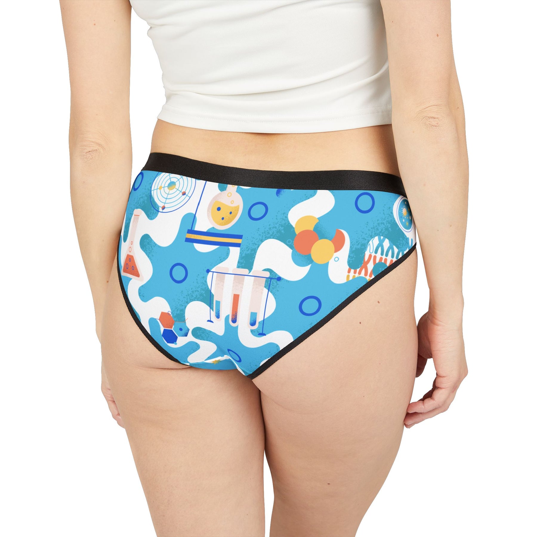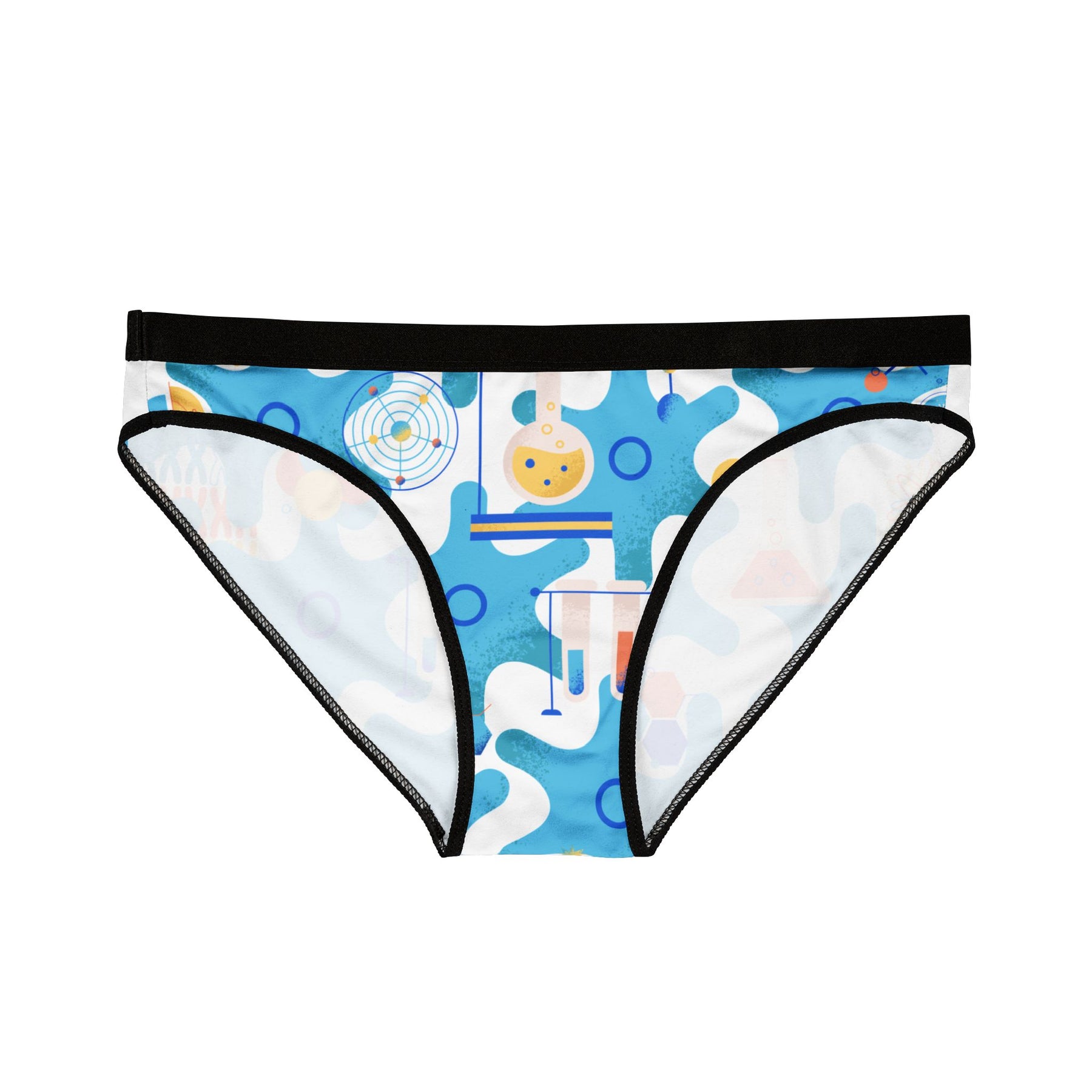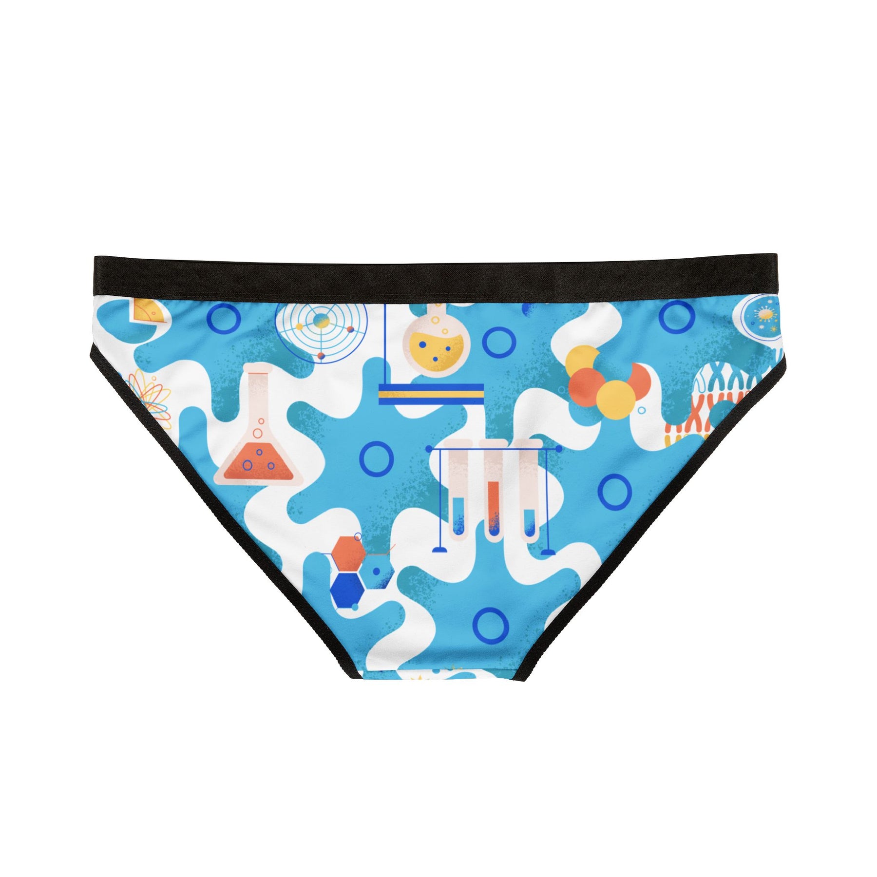 Unleash your inner science nerd with these vibrant, all-over printed undies. The cool blue and green design featuring scientific items and graphics is perfect for the brainy babe who loves rocking geeky chic. Stay comfy while showing off your intellectual side - these undies prove brains and beauty can coexist stylishly.