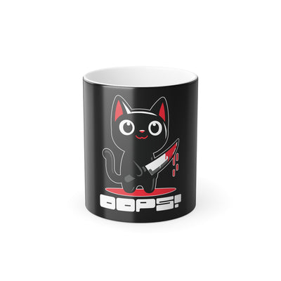 Mug: Murder Cat Mug, Fun Gift for Cat Lovers, Oops! Design, Heat Sensitive Coffee Mug, Playful Kitchen Decor