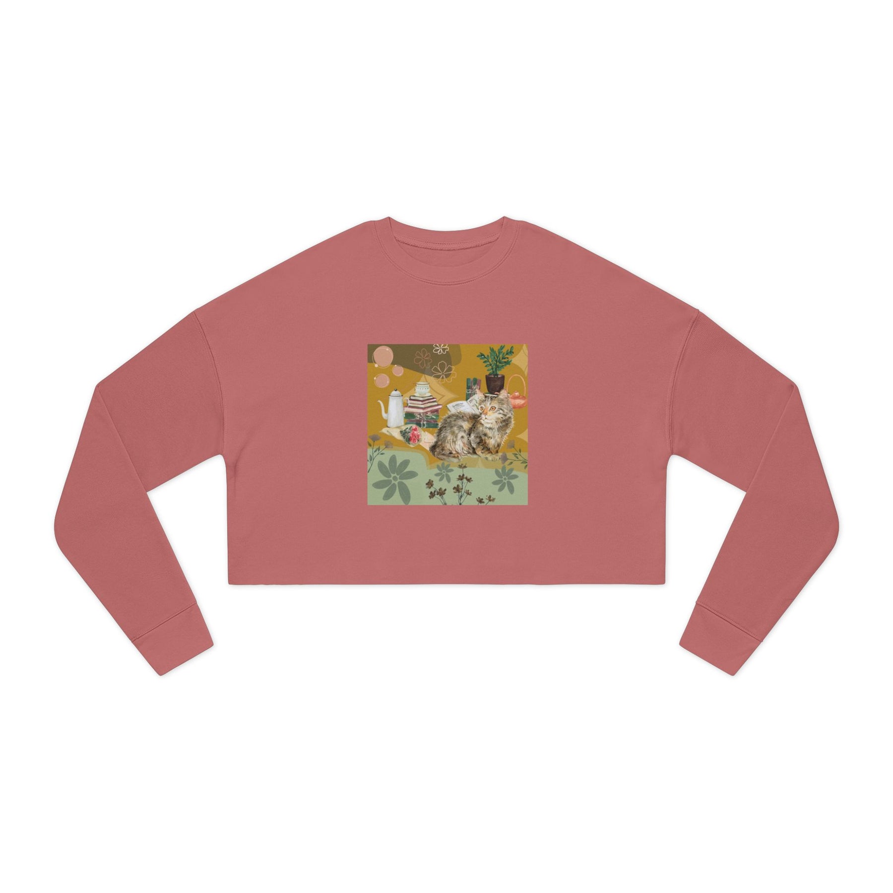 Sweatshirt: Autumn comforts with Kitties & Books - Cropped
