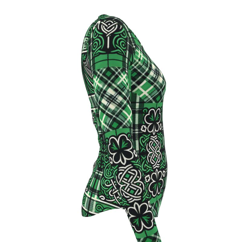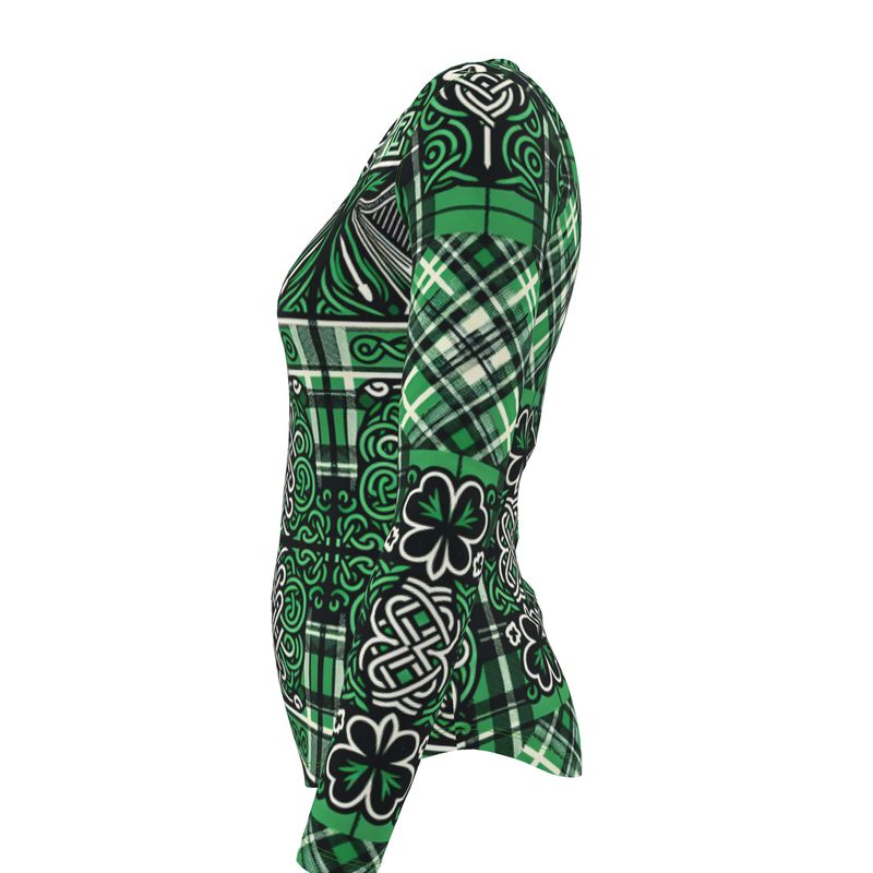 Luck be a lady tonight in this bewitchingly stylish top that's equal parts cozy and chic. A playful mix of plaid and Celtic-inspired prints dances across the soft fabric blend, instantly imbuing any outfit with an irresistible free-spirited vibe. With its effortless drape and flattering v-neckline, this long sleeve tee brings an enviable dose of laid-back glamor whether you're grabbing brunch or catching up over cocktails. But the real magic lies in the details - each piece is handmade to order with a touch of artisanal flair. So go ahead and tempt fate in this lucky charm of a shirt. After all, with threads this fabulous, feeling fortunate just comes with the territory.