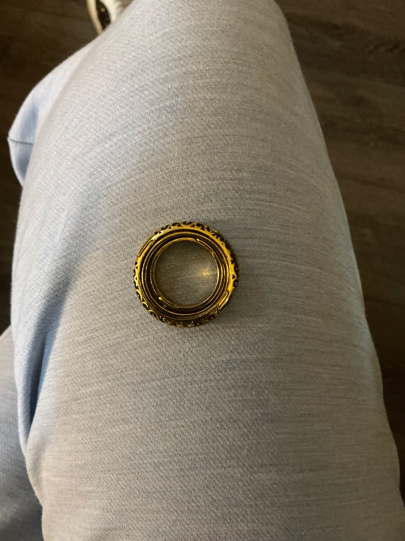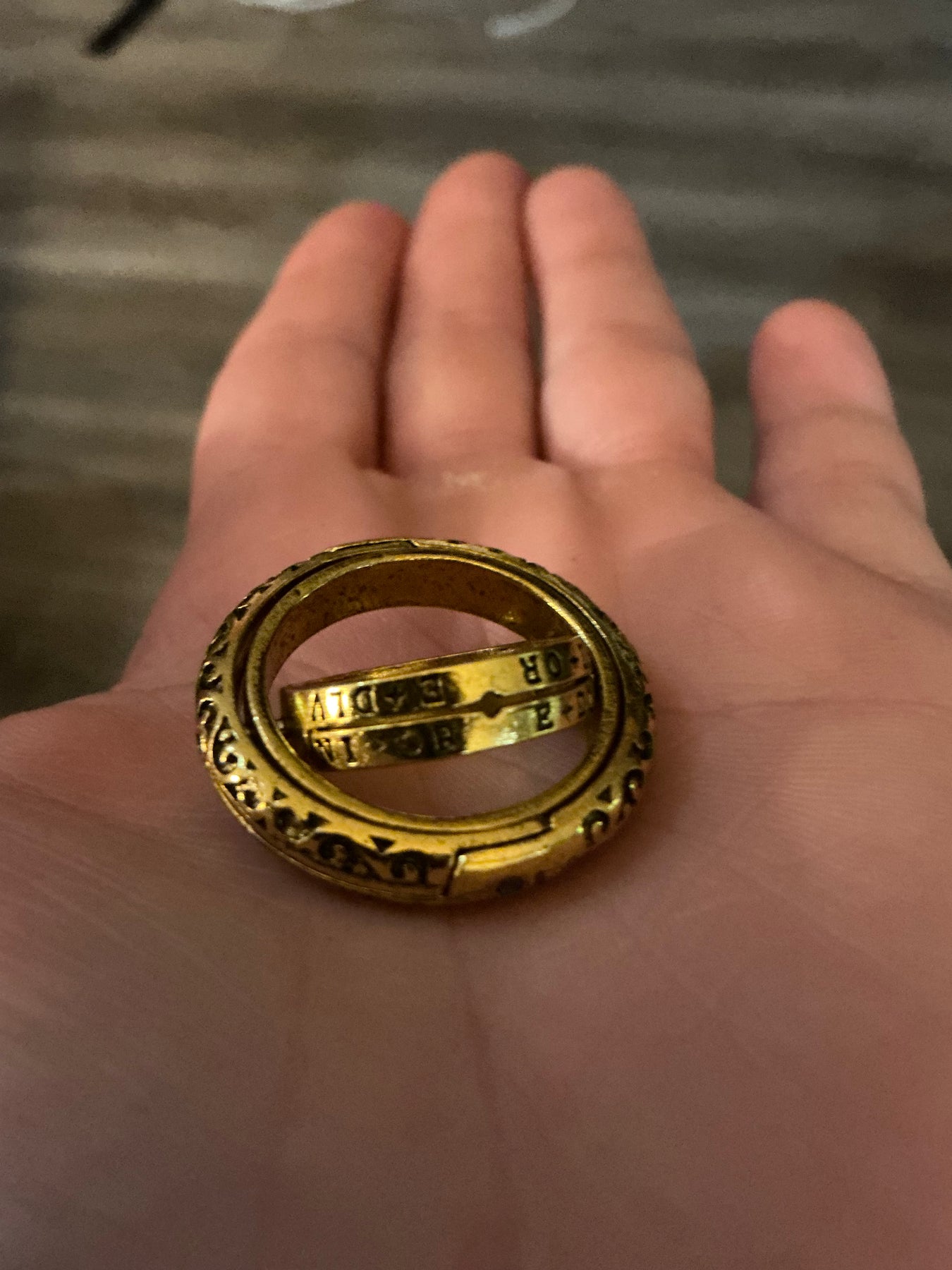 Close-up of a stainless steel Dr. Who inspired fidget ring with a rotating outer band, designed for stress relief and focus.