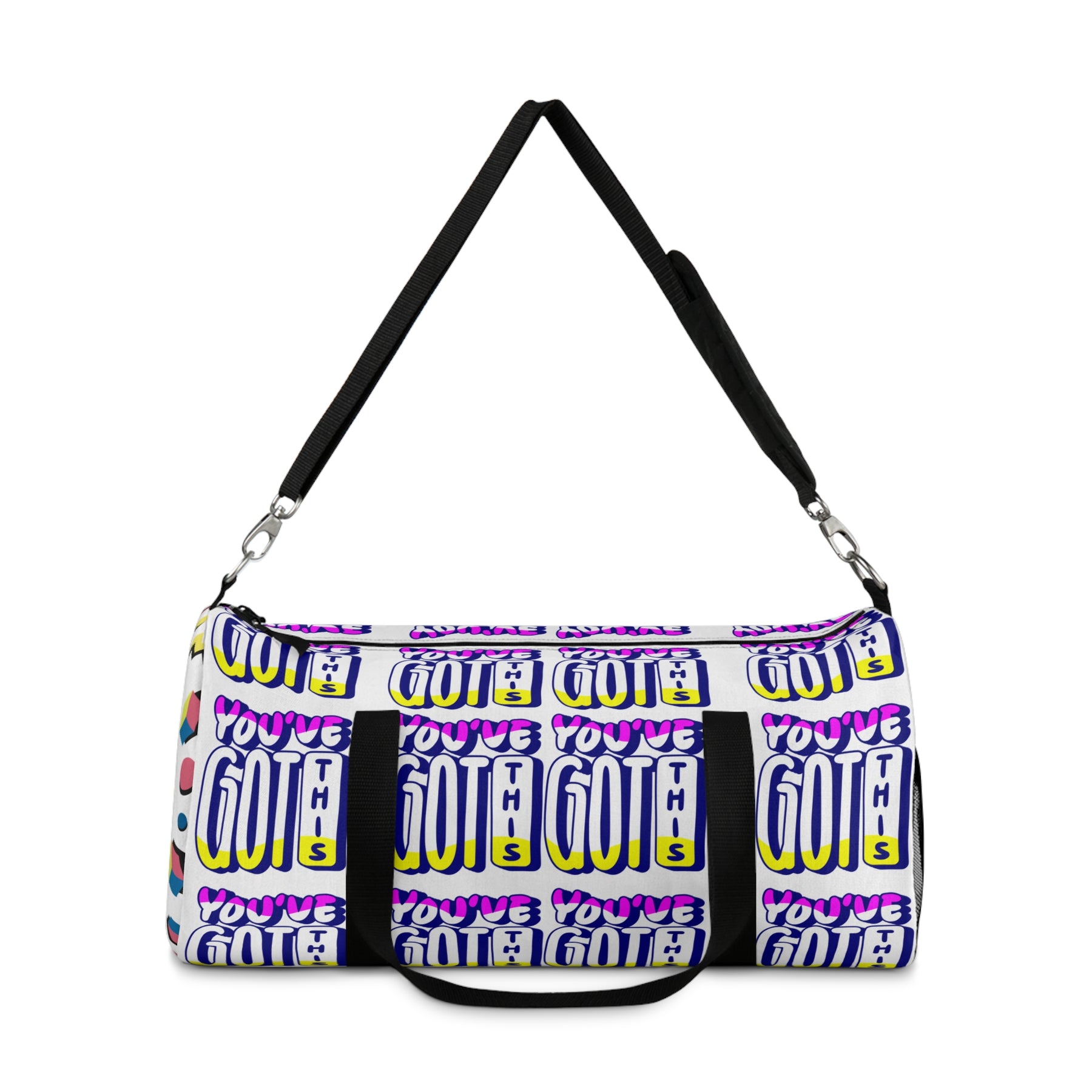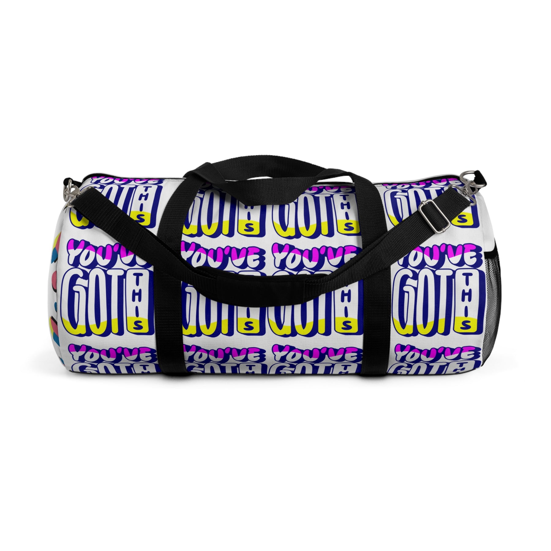 You've got this, and this duffel has got your back. Whether you're hustling to the gym or jet-setting for the weekend, this stylish yet durable bag is ready to be your workout wingman or travel companion. With a roomy main compartment and smart pockets for stashing all your gear, it keeps your essentials organized so you can focus on killing it. And that bold, motivational message printed on the side? It's a much-needed reminder to approach each sweat sesh or adventure with confidence and can-do spirit. Made from a sturdy material blend that can take a beating, this duffel is as tenacious as you are. So grab it, sling it over your shoulder, and get out there—you've got this, and this bag has got you covered.