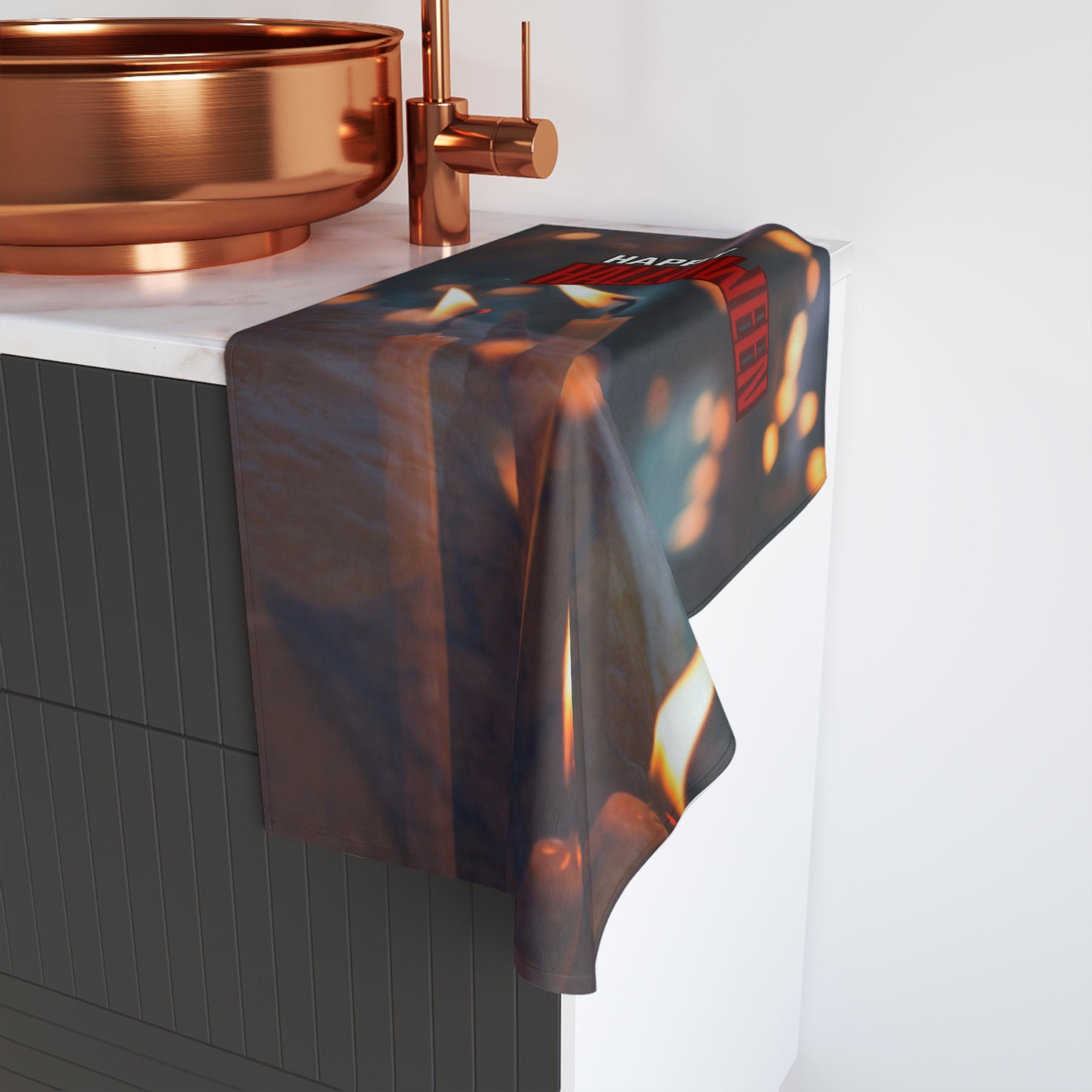 Add a spooky touch to your home decor with this Halloween hand towel. Featuring a vintage-inspired candle design, this festive kitchen accent is the perfect way to get into the spirit of the season. Crafted from a soft cotton blend, this towel is as functional as it is frightful. Use it to wipe up spills or for a pop of spooky style—your kitchen or bathroom will be the talk of all the ghosts and goblins. Measuring 16 by 25 inches, this towel is generously sized and machine washable for fuss-free care. Whether you prefer tricks or treats, this Halloween towel is sure to delight. After the jack-o’-lanterns have been extinguished and the candy bowls emptied, this spirited towel will keep the spooky cheer alive all season long.