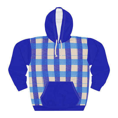 Cozy Blue Checkered Unisex Pullover Hoodie
