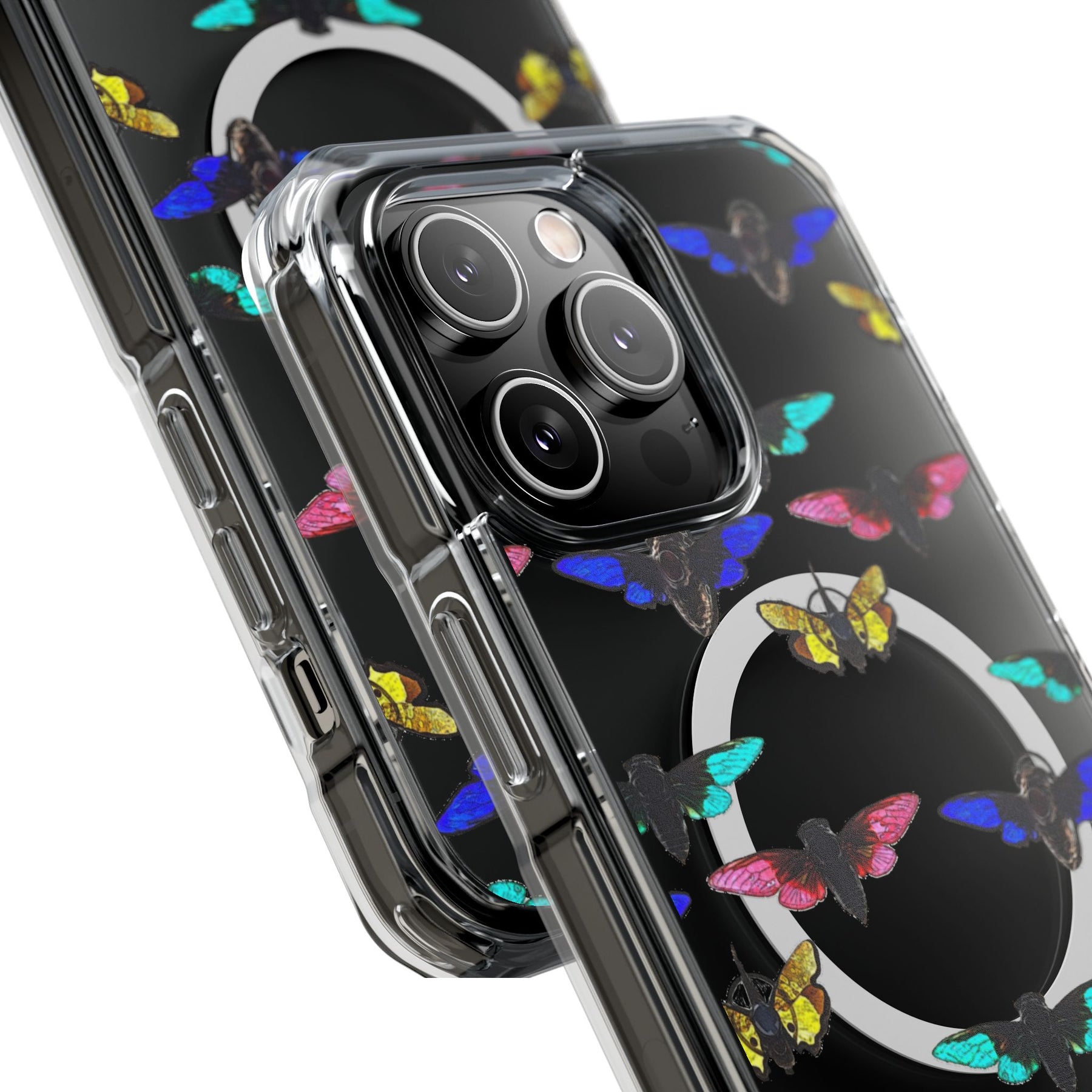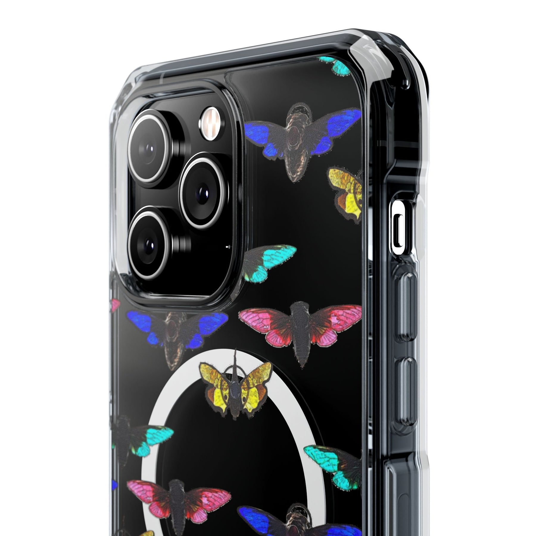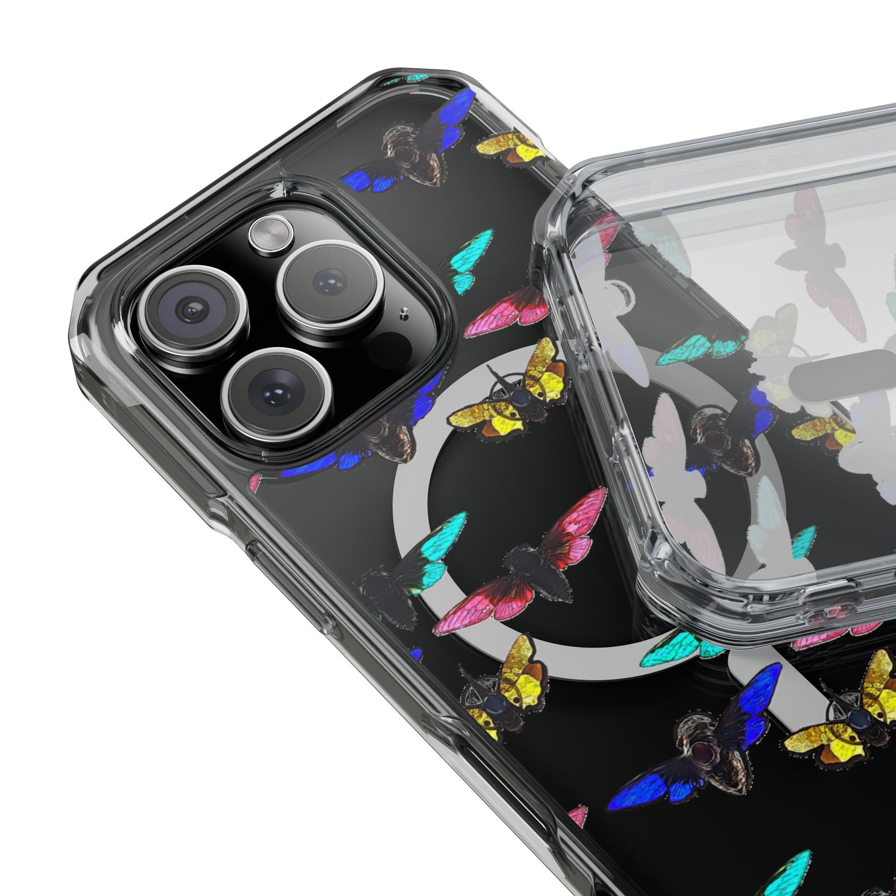 Glow brightly with the magnetic glow moth iphone case. It brings style and protection in a clear case that features an eye-catching vibrant moth design. The Magnetic Glow Moth Clear Impact Iphone Case can showcase your quirkiness and keep your cellular device protected from impact. Its MagSafe® compatibility enhances convenience, making charging and accessory attachment a breeze. Embrace the unique combination of style and security while celebrating your individuality! The magnetic glow moth phone case is perfect for nerds of science and those interested in various oddities!