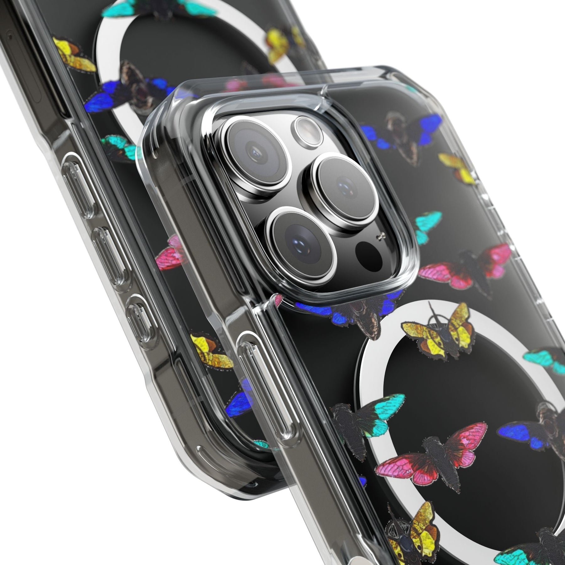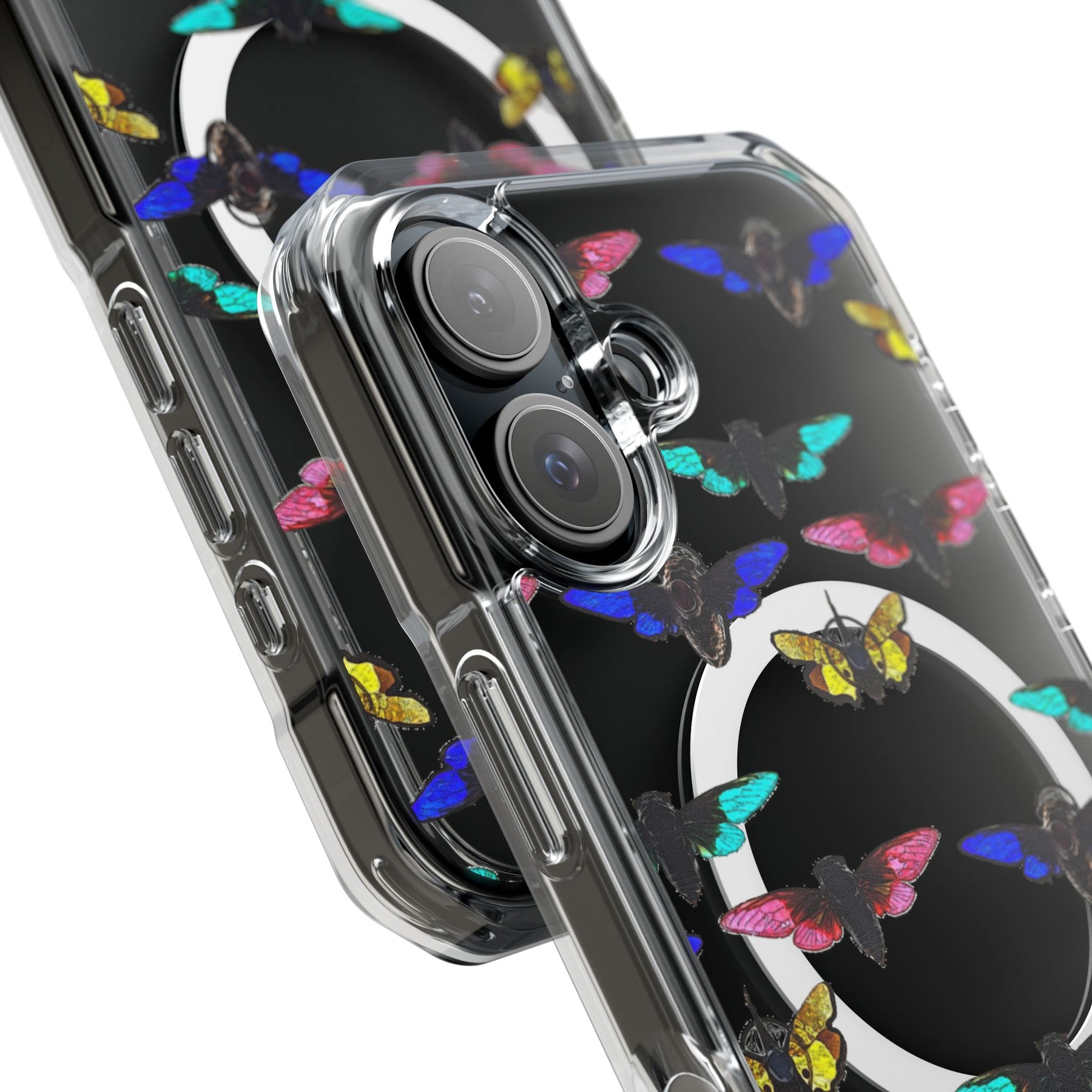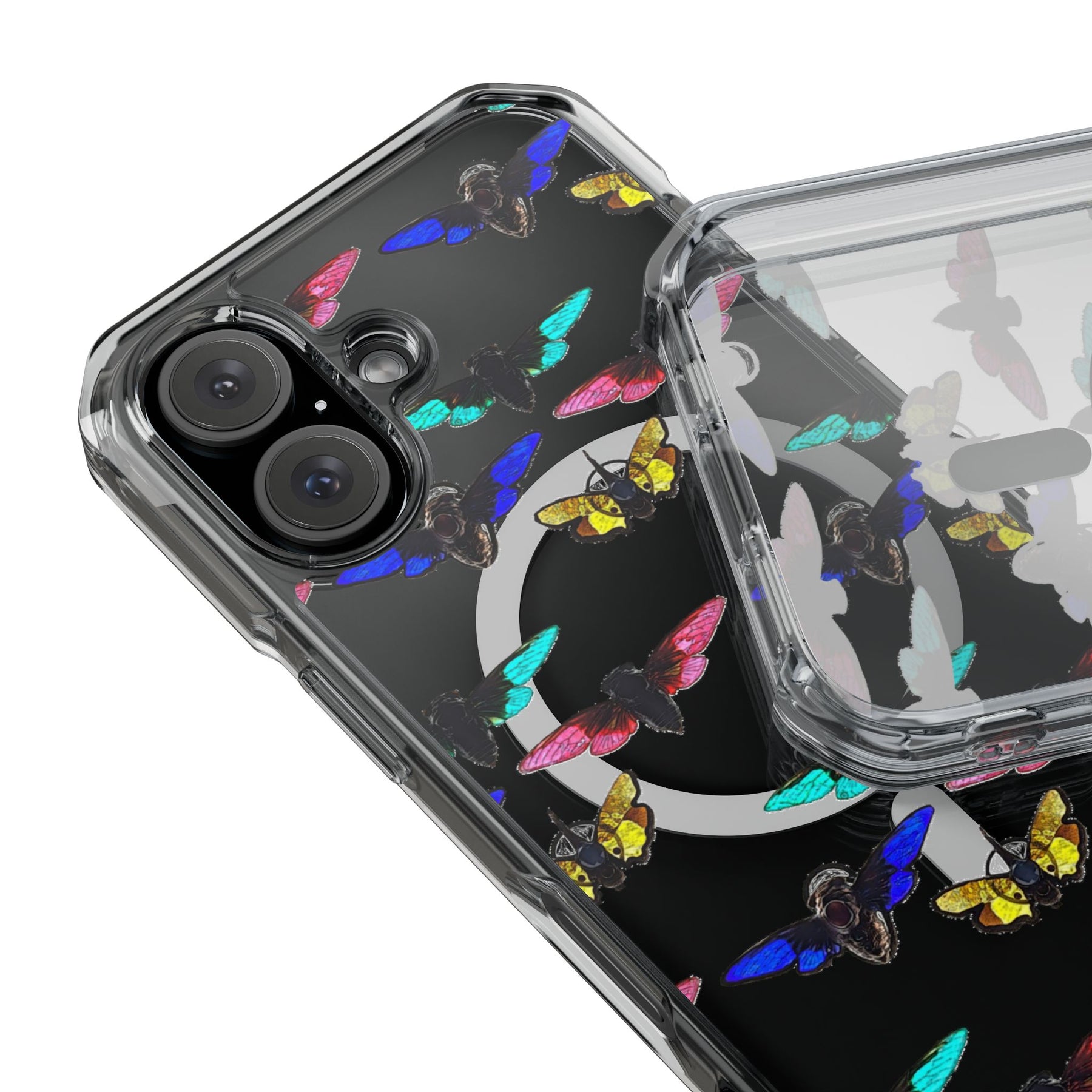 Glow brightly with the magnetic glow moth iphone case. It brings style and protection in a clear case that features an eye-catching vibrant moth design. The Magnetic Glow Moth Clear Impact Iphone Case can showcase your quirkiness and keep your cellular device protected from impact. Its MagSafe® compatibility enhances convenience, making charging and accessory attachment a breeze. Embrace the unique combination of style and security while celebrating your individuality! The magnetic glow moth phone case is perfect for nerds of science and those interested in various oddities!