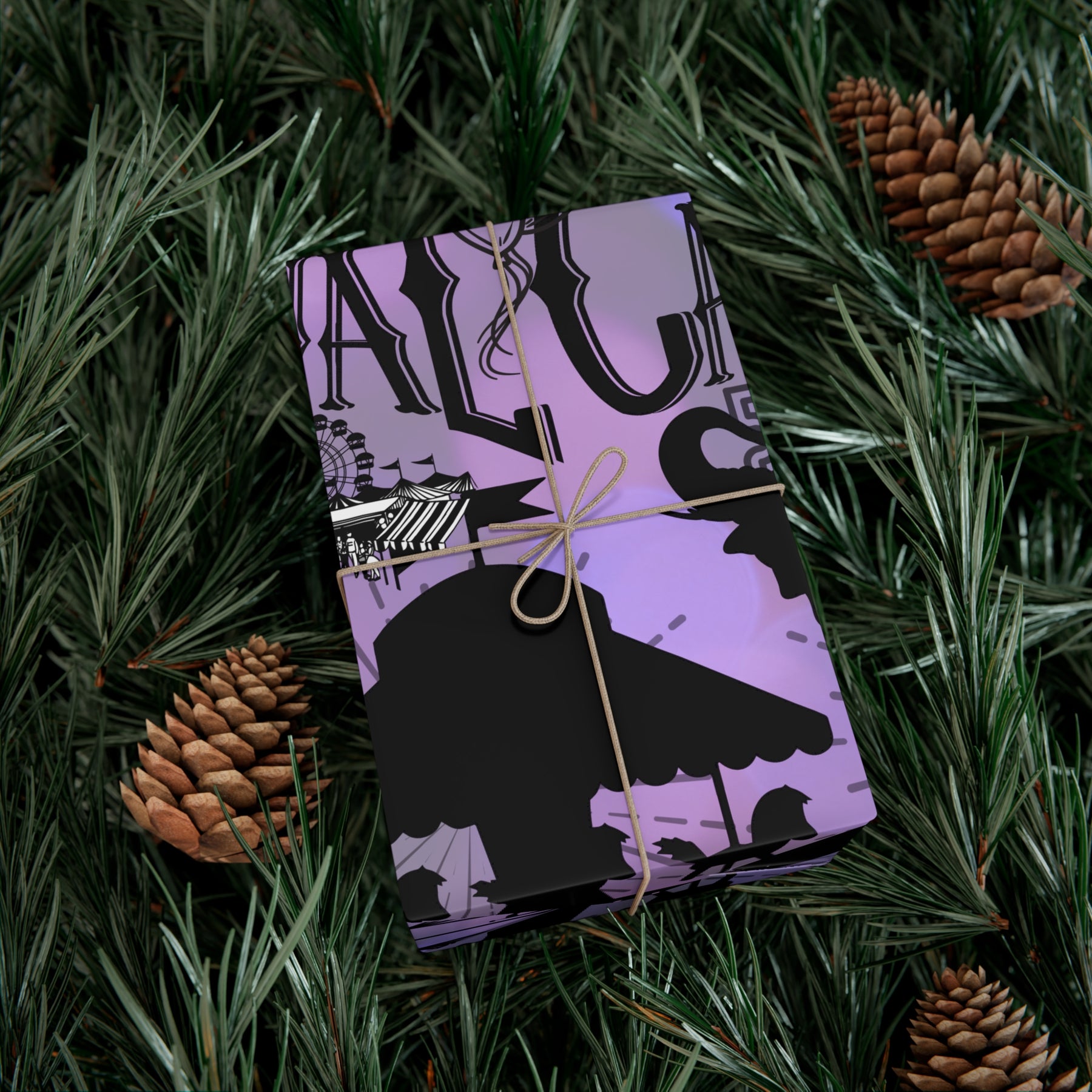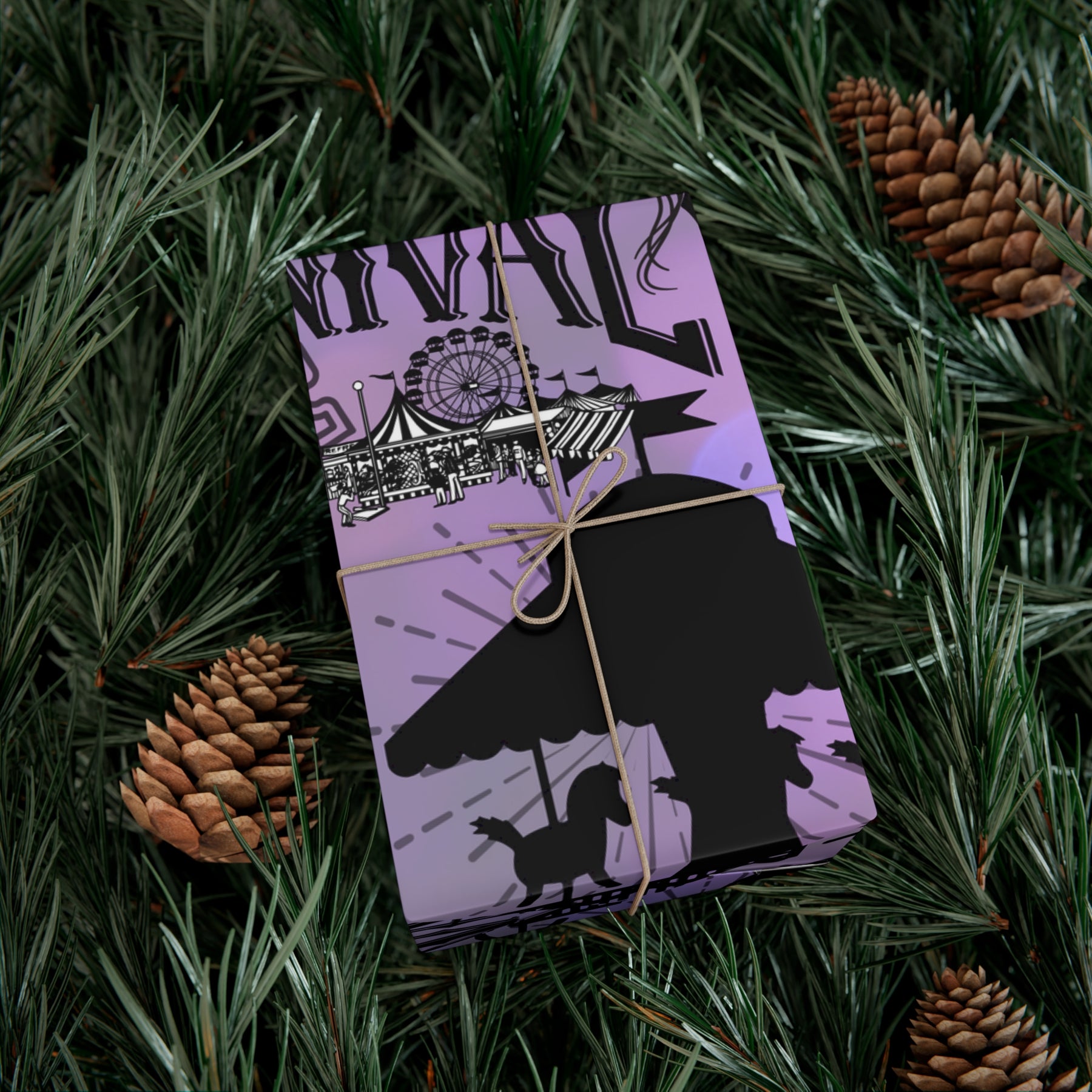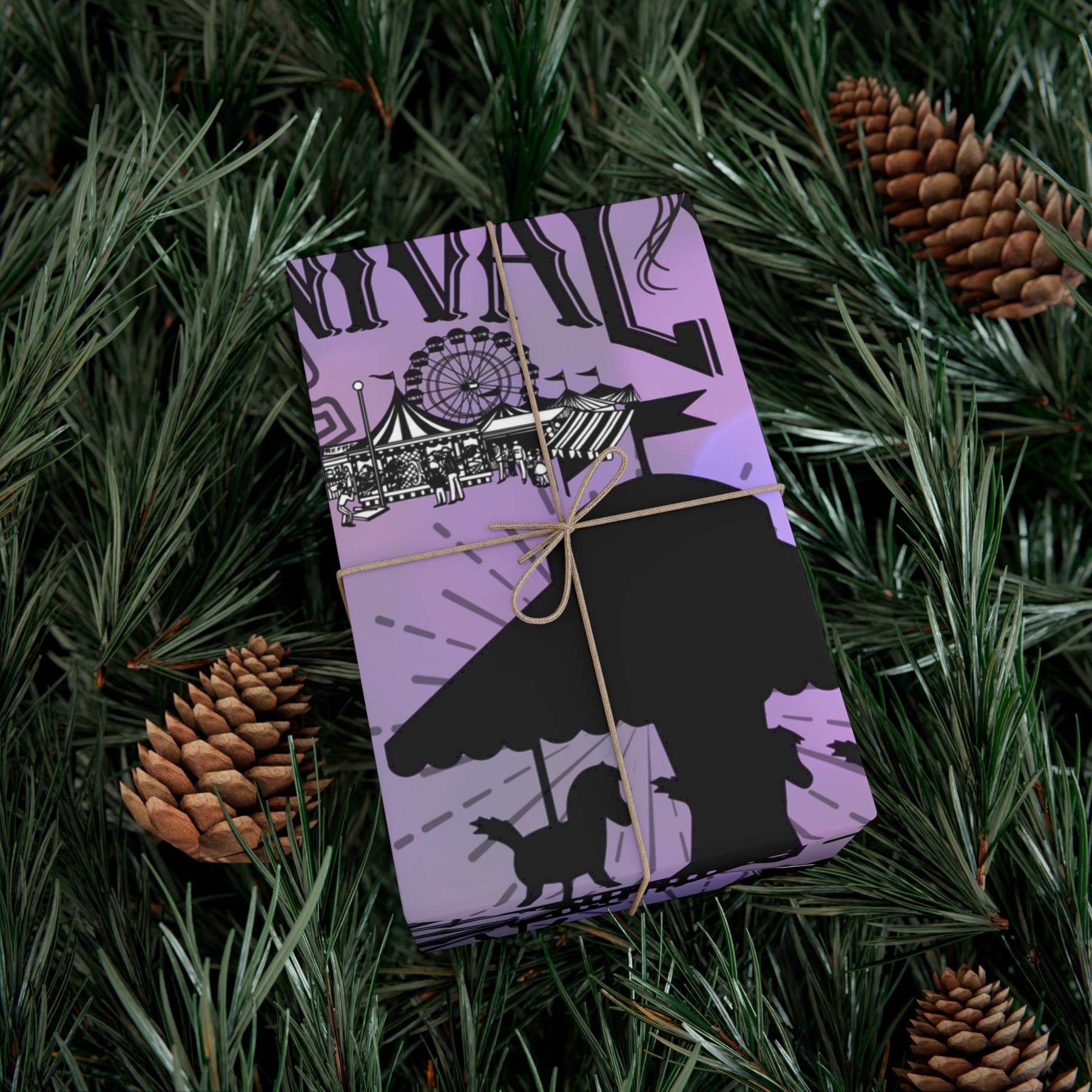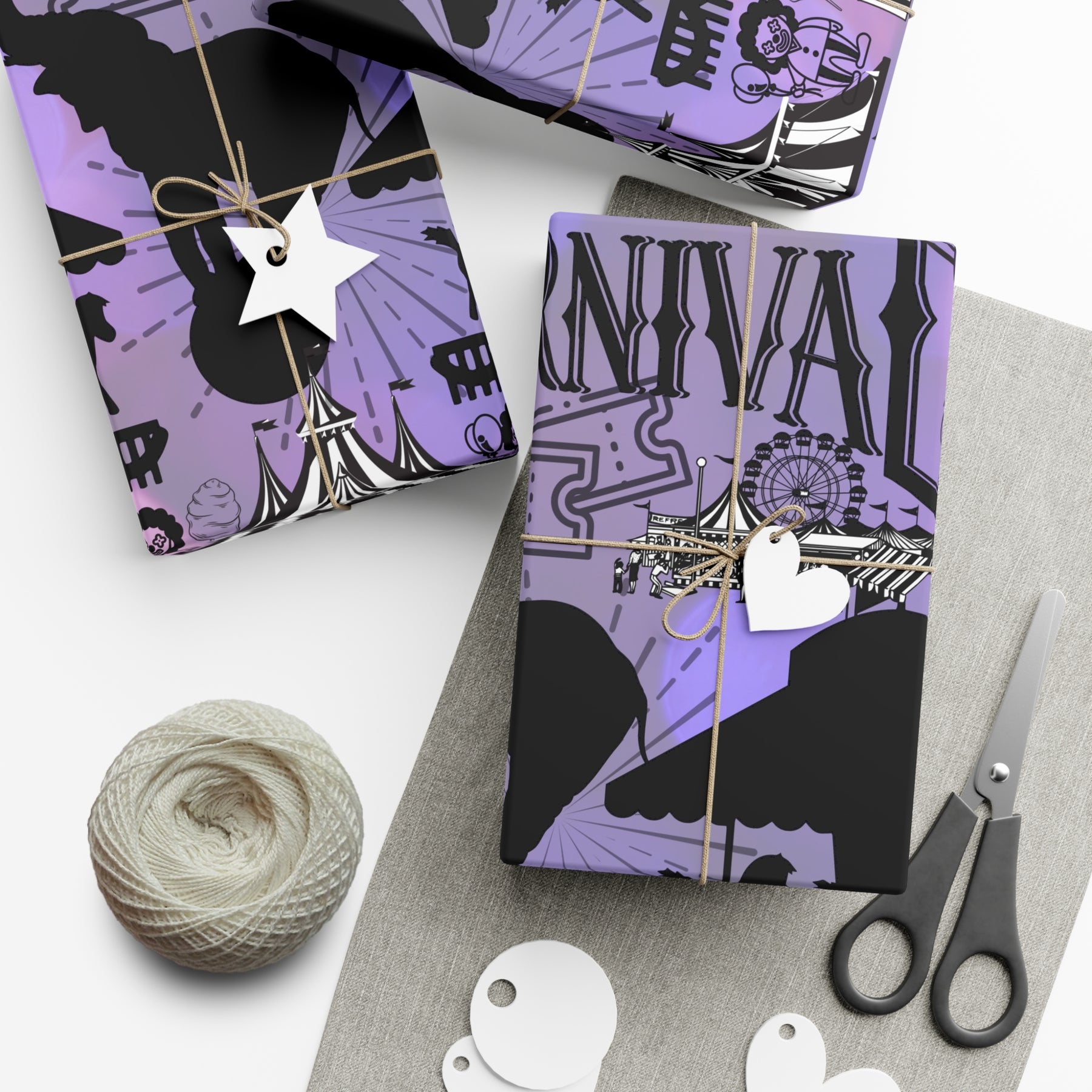 Let the revelry commence! This wrapping paper is a festive feast for the eyes, bursting with the dazzling colors and carefree spirit of a carnival sideshow. Swirling with vivid patterns, playful characters and just a touch of tawdry flair, it conjures the excitement of the big top coming to town. Simply wrapping a gift in these whimsical sheets transforms an ordinary package into a tantalizing mystery box of delights. Will it contain juggling clubs, a magician's hat or perhaps a stuffed prize from the ring toss? The possibilities are as endless as the merriment this wrap evokes. Use it to bring the thrill of the midway to any celebration. After all, every occasion could use a sprinkling of that signature carnival magic—the childlike wonder, the hint of mischief and, above all, the promise of unforgettable enchantment.