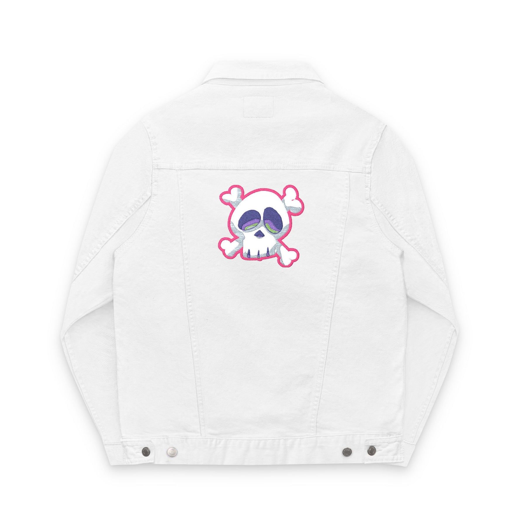 Embroidered Drop Dead Pink Punk Skull Denim Jacket – A bold statement piece for those who live unapologetically. Crafted from premium, durable denim, this jacket features an eye-catching embroidered pink punk skull on the back, blending rebellious streetwear vibes with high-fashion edge.