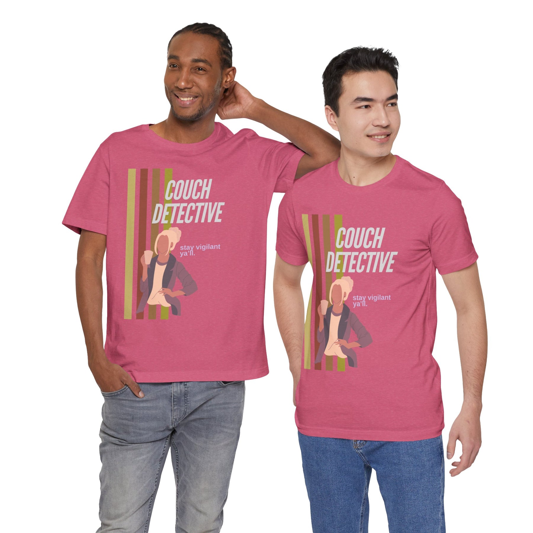 Calling all couch sleuths! This unisex tee lets everyone know you're on the case, solving true crime mysteries from the comfort of your sofa. The cool "Couch Detective | Stay Vigilant" design is the perfect conversation starter at your next binge-watching session. Just don't let the stakeout snacks leave any evidence behind!