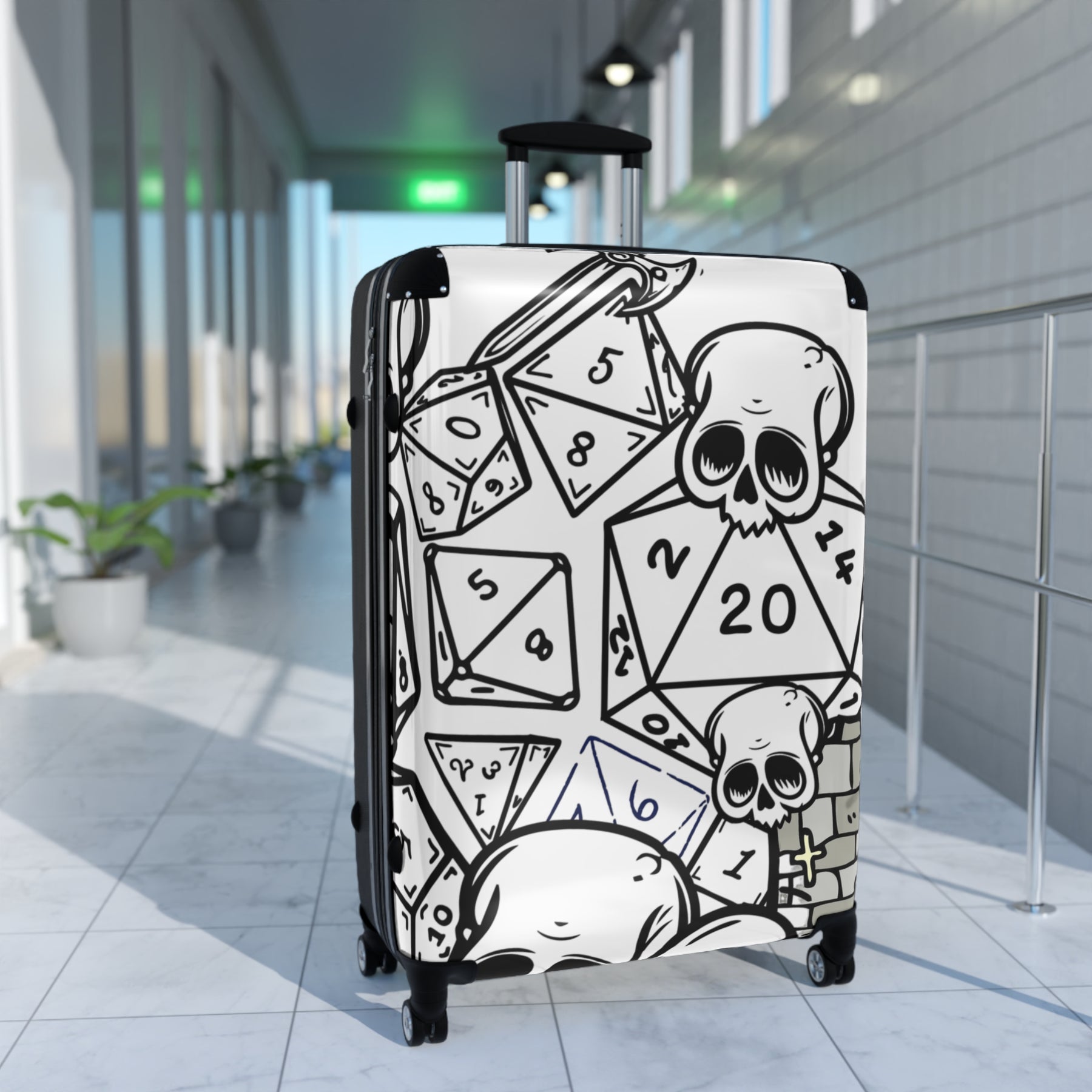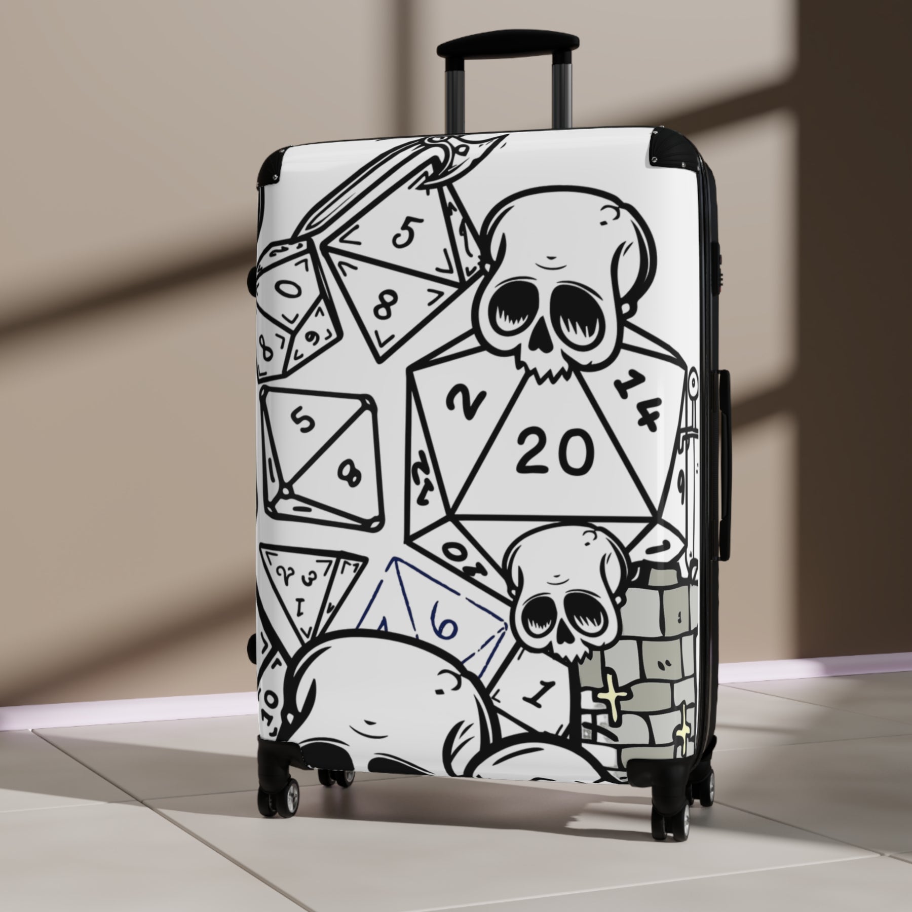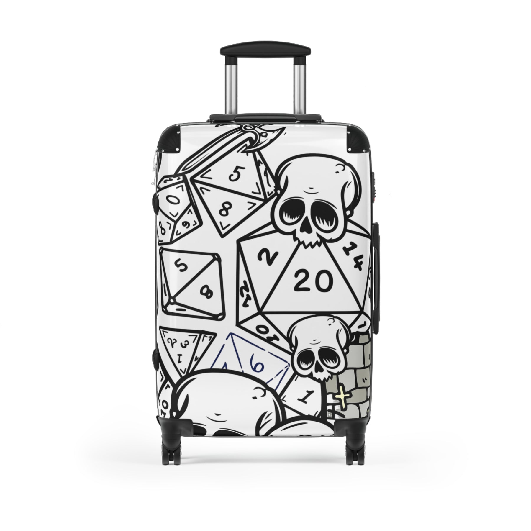 Your quest for the ultimate gaming suitcase ends here. This eye-catching Suitcase, designed for adventurers who love to stand out.  With a roomy main compartment fit for stashing rulebooks, minis and all your D&D essentials, you can ditch that ratty backpack for good. The black-and-white skull design screams "badass gamer," while the durable material blend can withstand even the most intense dice-throwing sessions. Whether you're headed to a weekend convention or just rolling for initiative in your buddy's basement, this suitcase ensures you'll arrive in style, ready to vanquish any foe. Just try not to get too carried away with those boisterous victory cheers—the stares from muggles can be brutal. But hey, with luggage this cool, a little geeky pride is a small price to pay.