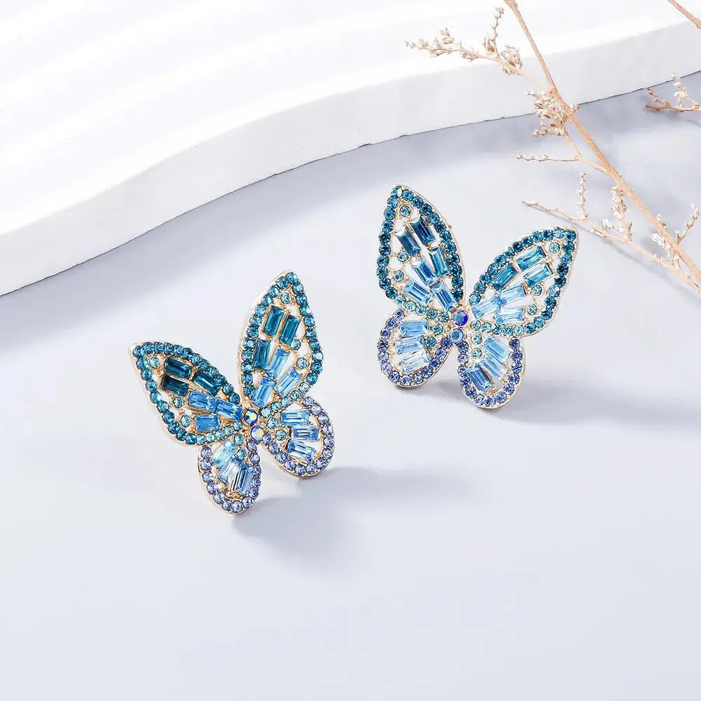 Alloy Inlaid Rhinestone Butterfly Earrings