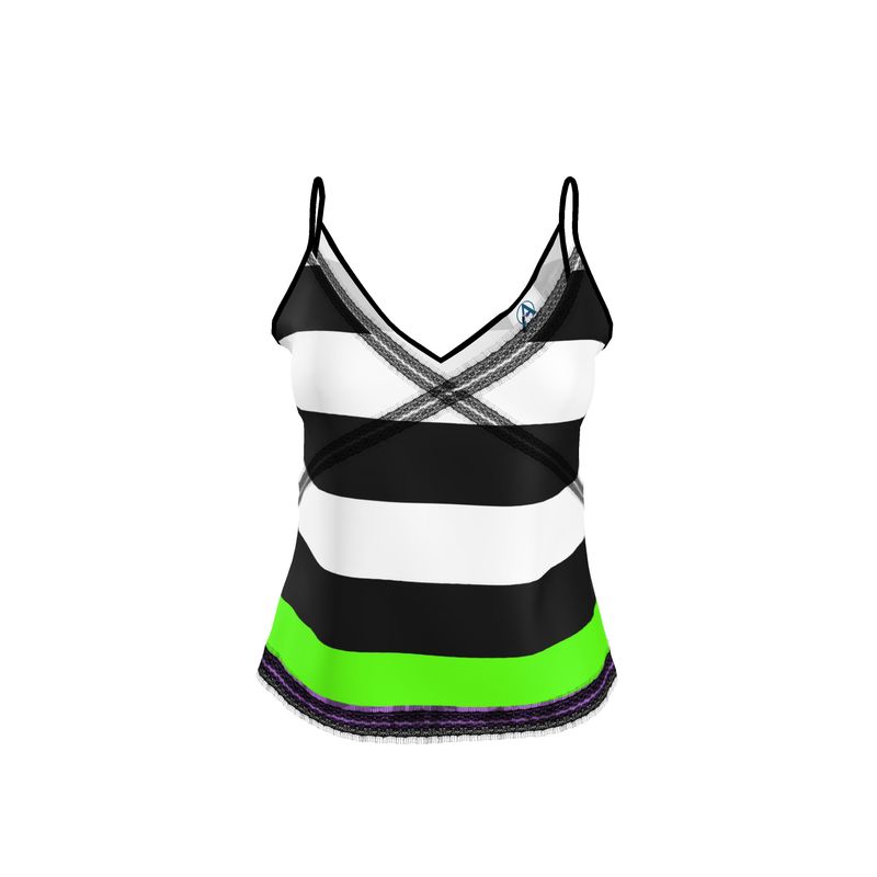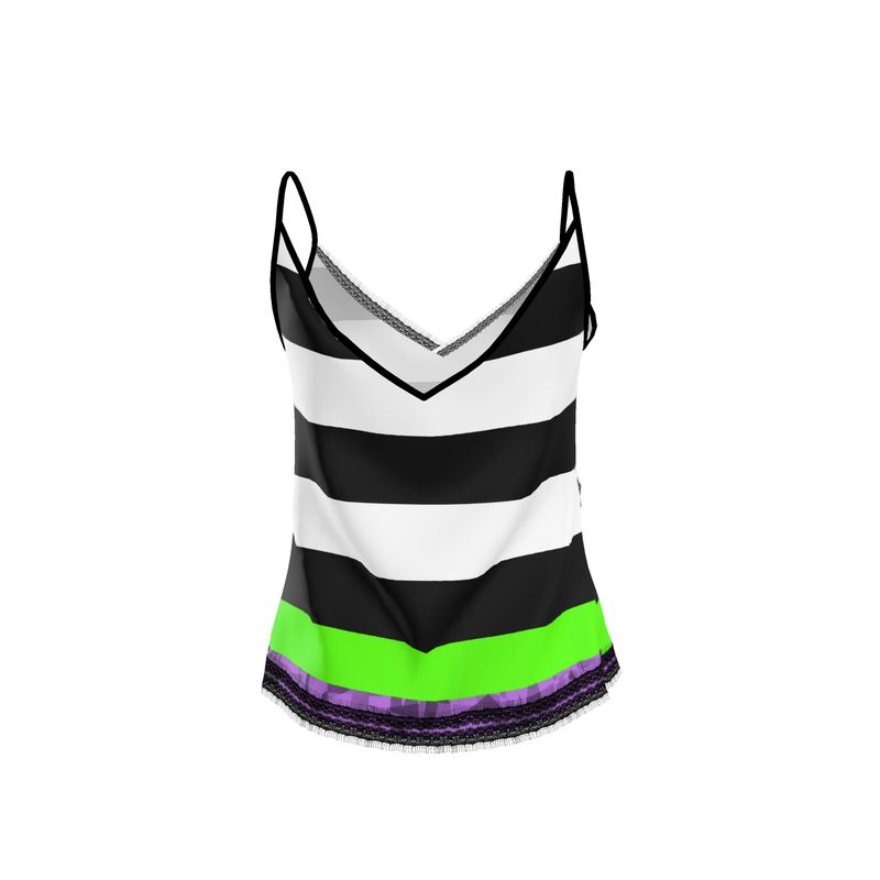 Elevate your basics with this designer cami top from Artessorize's 'East of Oz' collection. Its classic black and white print with a pop of color pairs perfectly with jeans or a blazer. Enabling easy day-to-night transitions. The flattering V-shaped neckline adds a feminine touch, making it an ideal gift for her. Crafted from quality materials, this versatile cami takes you from day to night with ease.