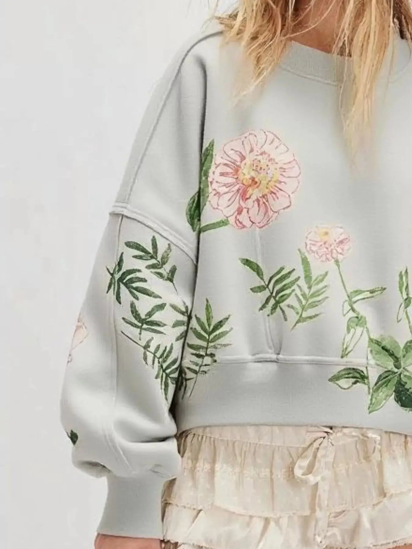 Printed Round Neck Dropped Shoulder Sweatshirt