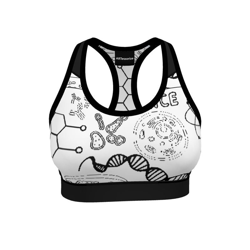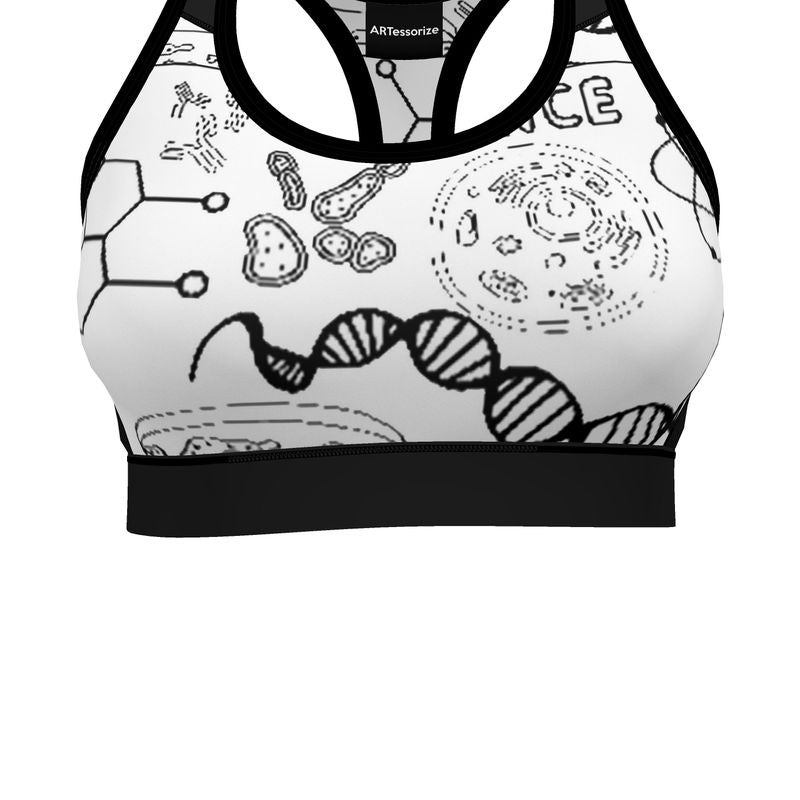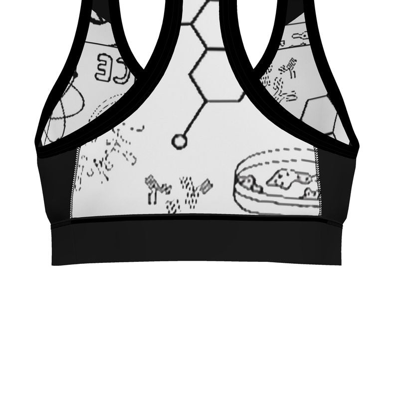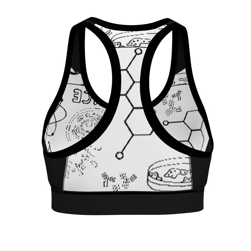 Perfect for your high-intensity workouts, this handmade sports bra features a bold E=MC2 and science print that's both stylish and scientifically inspired. The premium sport lycra provides excellent support and breathability, allowing you to push your limits without any constraints. An ideal fusion of fashion and function for the active woman.